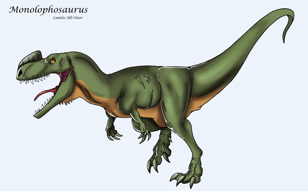 Monolophosaurus was a species of dinosaur that lived in China 165 million years ago. Named after the single crest on its head, the only individual found is 16 feet long. This predator was found in the same formation as Guanlong, the oldest tyrannosaur; Tuojiangosaurus, an Asian relative of Stegosaurus; and Yinlong, the oldest ceratopsian. It is likely that to avoid competition, Guanlong hunted the smaller Yinlong and Monolophosaurus hunted the larger and more dangerous Tuojiangosaurus.